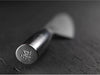 This Japanese santoku has an extremely hard MicroCarbide powder steel core for excellent cutting edge retention and sharpness. Santoku is the best-selling Japanese blade shape and the name translates as "Three Virtues", these being meat, fish and vegetables. The flat cutting edge lends itself to a chopping motion rather than the rocking cutting movement of European chef's knives.