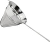 Easily strain custards, purees, soups, and sauces with this 8.5" bouillon strainer. This stainless steel strainer features 40 mesh, perfect for delivering ultra smooth consistency. The long flat handle is lightweight and the classic conical shape ensures ease of use. When not straining foods, use it to dust pastries.