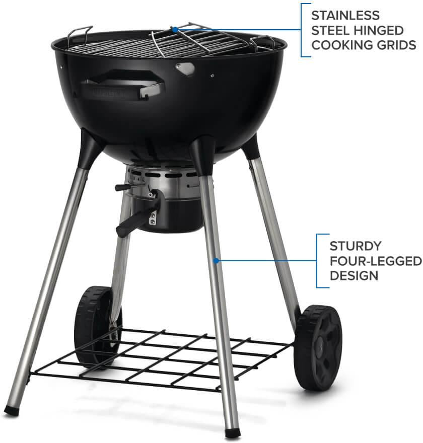 - integrated temperature gauge helps you maintain the ideal temperature while you grill at a comfortable height, thanks to improved leg joints that provide rock-solid stability and an elevated grilling surface for your.