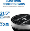 - Key includes 21.5-inch (55 cm) diameter cooking grid allows you to slow smoke, roast, and sear meals featuring ease The cast iron grids hold heat and provide the best searing, they are hinged to allow easy addition.