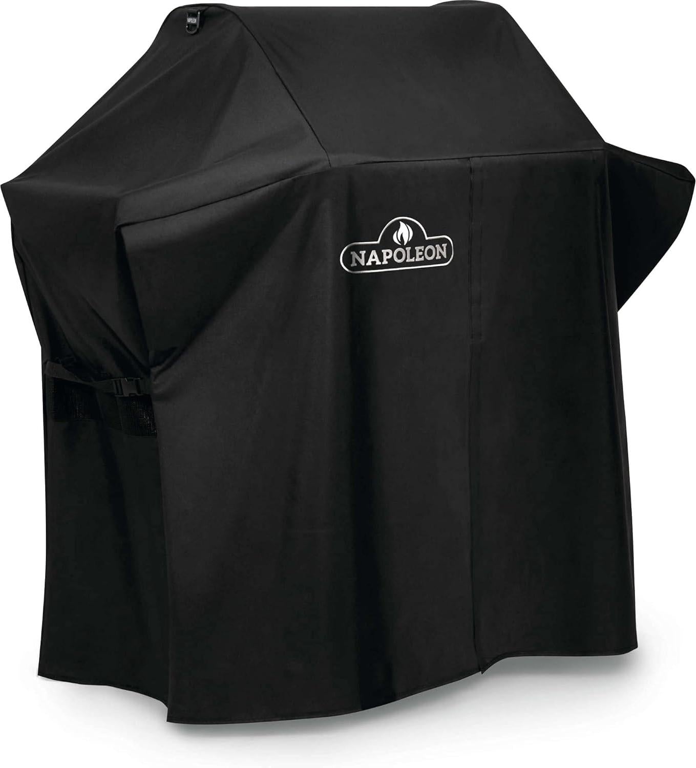 Keep your Rogue® 525 Series Gas Grill protected in every season with this Premium Grill Cover from Napoleon. Designed for large-sized grills like the Rogue® 525, this cover delivers dependable, all-weather protection while maintaining a clean and polished appearance. Constructed from durable, black, water-resistant vinyl fabric, this cover helps prevent mildew and resists cracking over time. Enhanced UV inhibitors provide superior fade resistance, protecting against sun damage and fabric deterioration. Adjustable straps with buckles secure the cover snugly beneath the grill’s side shelves, ensuring a wind-resistant fit. A rear air vent promotes airflow to reduce moisture buildup and help prevent mildew, even on gusty days. The front Velcro panel allows quick access to cabinet storage and makes covering and uncovering effortless. Integrated hanging loops provide convenient storage when the grill is in use. Backed by a 3-year limited warranty, this premium grill cover ensures long-lasting protection for your Rogue® 525.