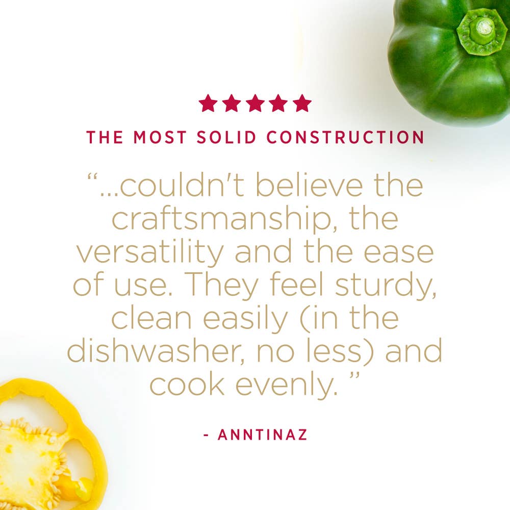 • DESIGN YOU'LL LOVE with a permanently secured grip ensured by the double riveted stainless-steel handles, and an easy size identification thanks to capacity markings.