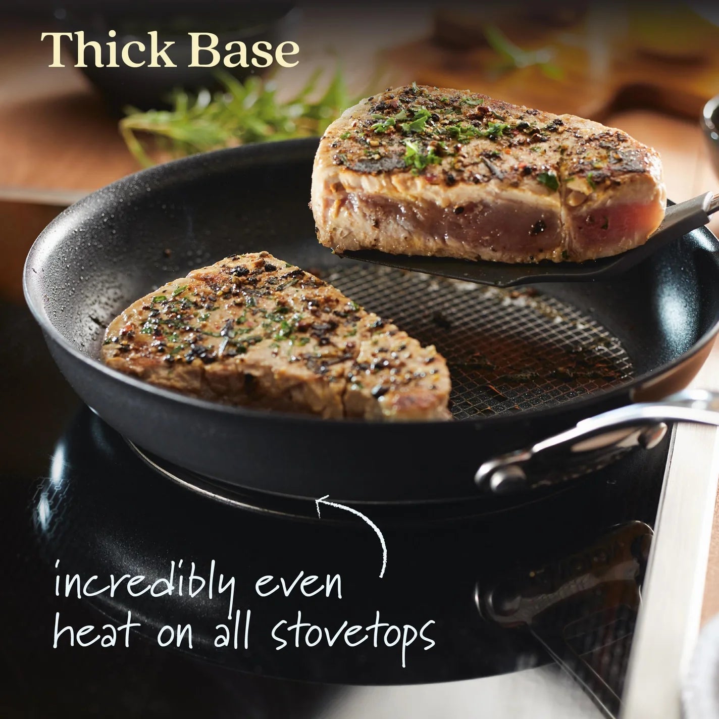 Built to withstand the rigors of culinary exploration, Anolon X pots and pans are metal utensil safe, oven-safe up to 500 degrees Fahrenheit, and compatible with all cooktops, including induction stoves. Tempered glass lids seal in heat while dual-riveted handles offer optimal control and confidence with every use.