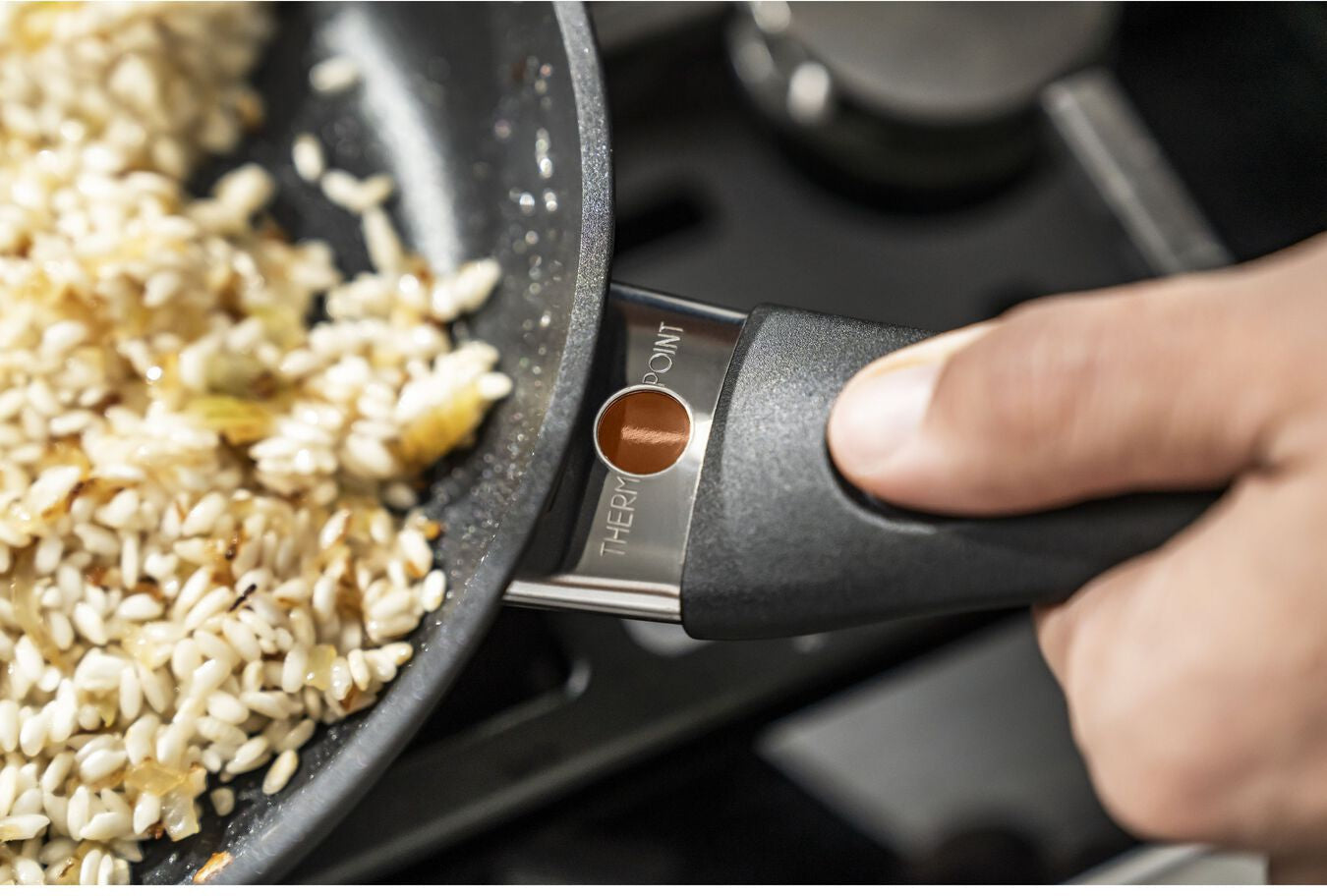 Ballarini Rialto non-stick cookware is the perfect choice for any kitchen and the path to easier, healthier cooking. Advanced forging techniques transform a single piece of 98% pure aluminum into varying thicknesses, putting more or less metal where it matters most. The extremely tough KERAVIS non-stick coating is free of PFOA, heavy metals, and nickel, resulting in safer, healthier food for you and your family. The three layer ceramic reinforced coating is even tough enough for use with metal utensils. Dishwasher safe