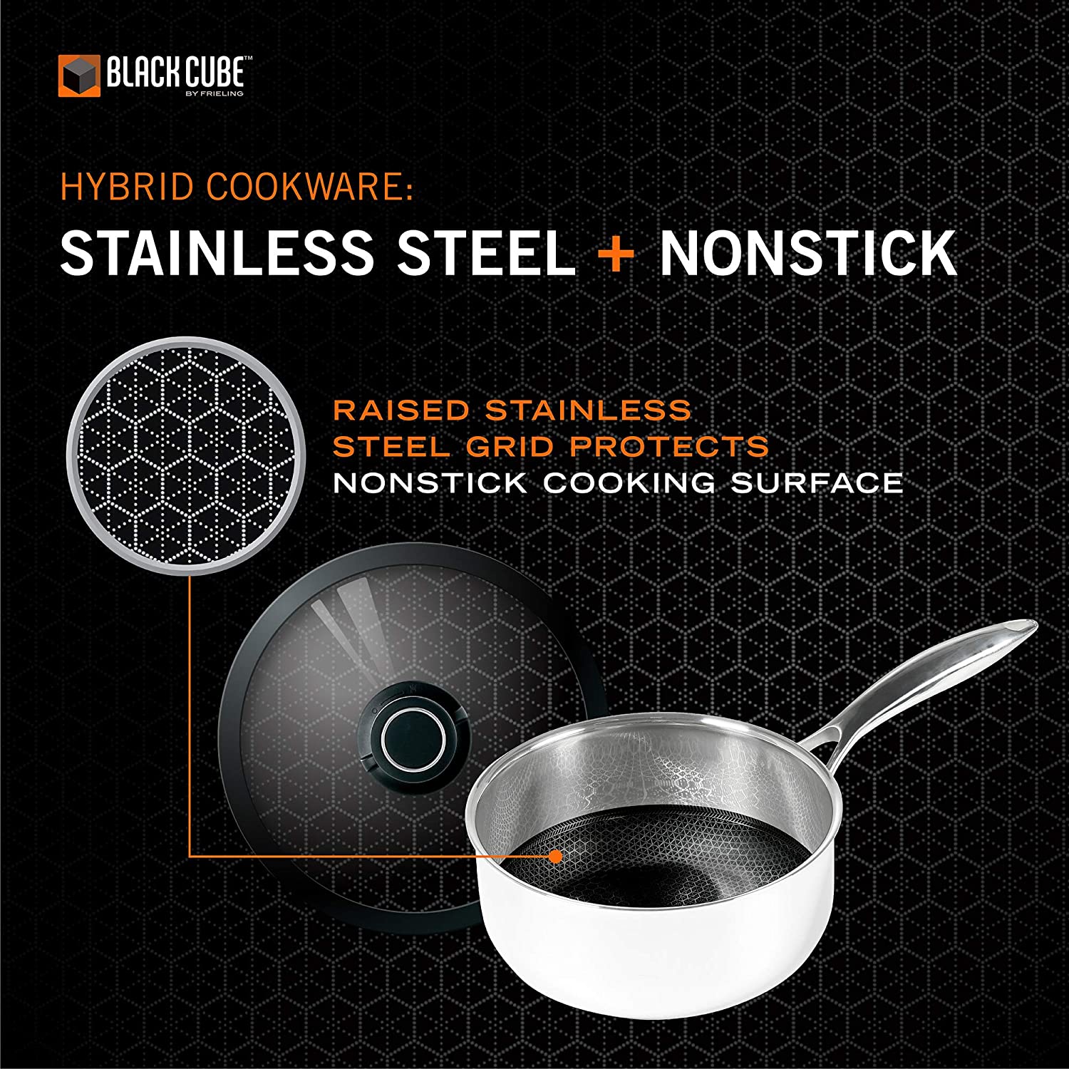 Black Cube offers the world’s first hybrid cookware with the ultimate cooking surface. Each pan cooks like stainless steel and cleans like nonstick! Providing superior browning capabilities – thanks to a stainless steel textured surface – the pans/pots are still easy to clean! As an innovation award winner, Black Cube aspires to bring you the best in stainless nonstick cookware.