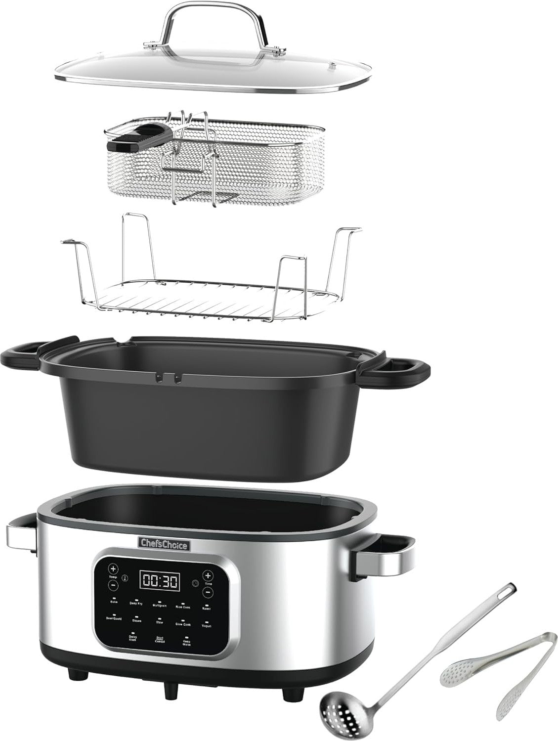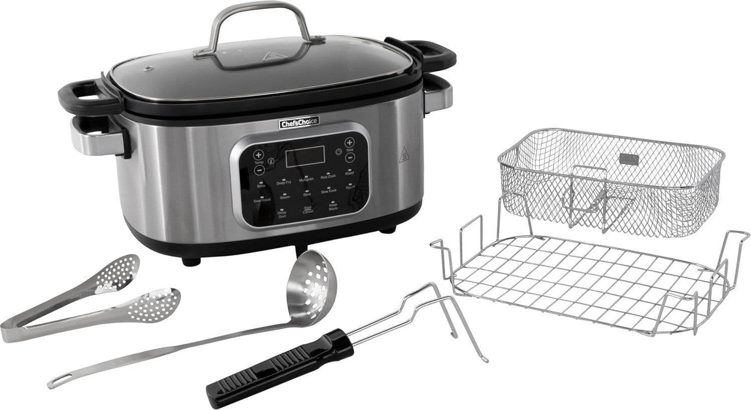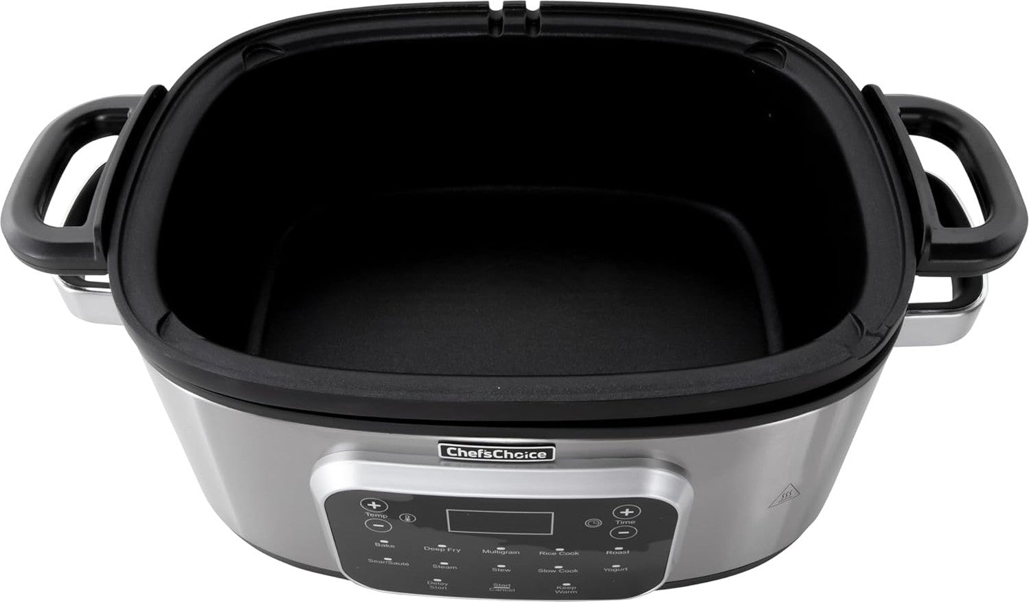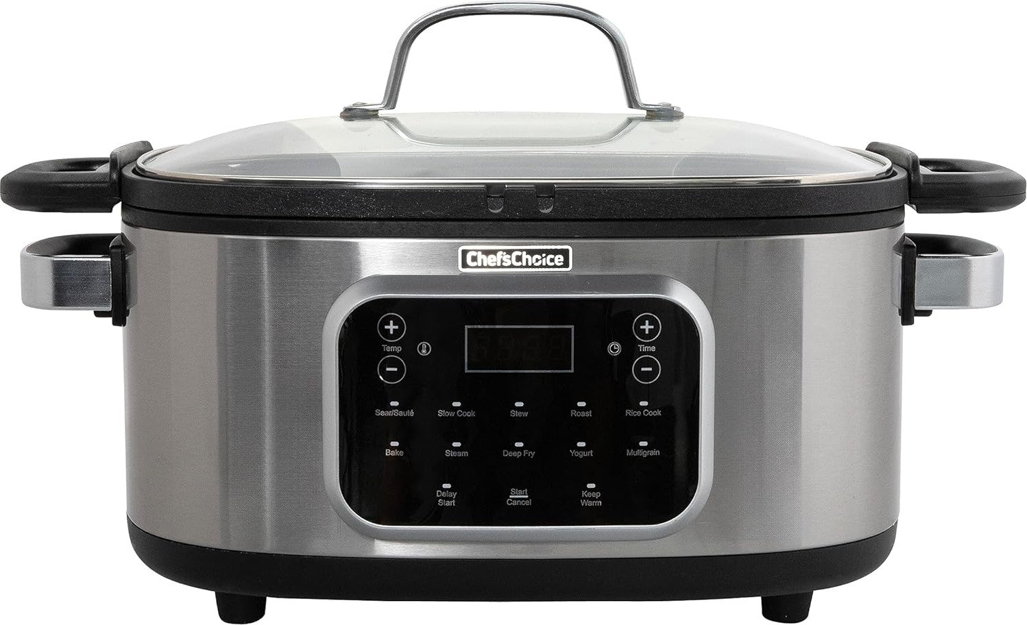 The Chef's Choice 6 Qt Capacity Black Stainless Steel Non-Stick Extra-Large 20-in-1 Multi Slow Cooker is a versatile and powerful kitchen appliance designed to streamline your cooking process and elevate your culinary creations. This multi-functional slow cooker combines the functionality of 20 different kitchen gadgets into one sleek and stylish device, making it an indispensable tool for both novice and experienced home chefs. With its large capacity, durable construction, and user-friendly design, the Chef's Choice Multi Slow Cooker is the perfect addition to any modern kitchen.