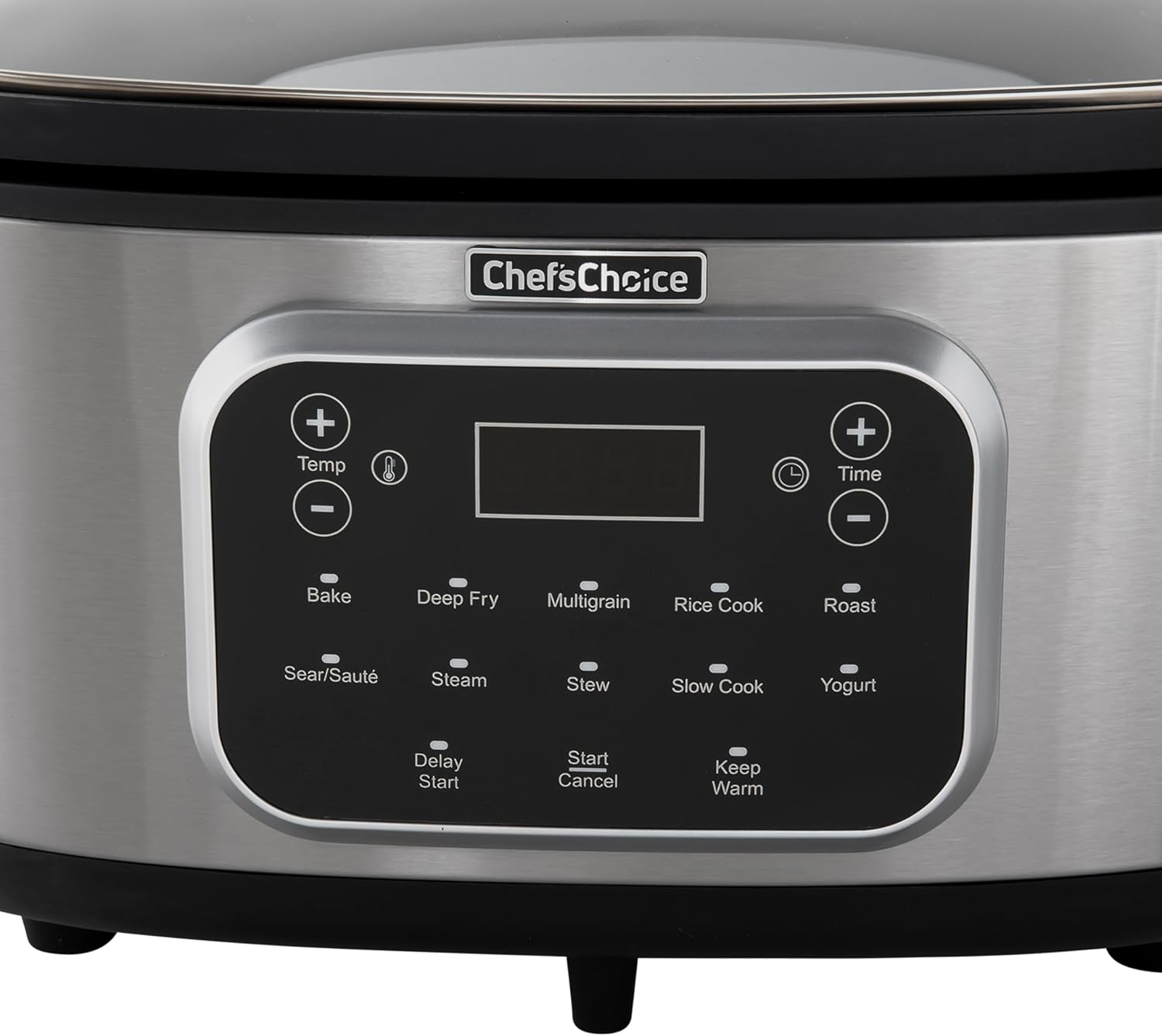 The Chef's Choice 6 Qt Capacity Black Stainless Steel Non-Stick Extra-Large 20-in-1 Multi Slow Cooker is a game-changer in the kitchen. Its extensive functionality, large capacity, and user-friendly design make it an invaluable tool for busy families and cooking enthusiasts. The sleek black stainless steel exterior, combined with the durable non-stick coating and energy-efficient operation, ensures that this multi slow cooker is both stylish and practical. Whether you’re preparing a quick weeknight dinner or an elaborate feast, the Chef's Choice Multi Slow Cooker delivers exceptional performance and convenience, making it an essential addition to any kitchen.