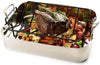 This sturdy nonstick roasting rack is ideal for turkeys, chicken or roasts. By raising the meat, you allow consistent hot air flow around the rack for even cooking. Coated with a silicone nonstick finish. Large side handles for easy lifting. Nonstick makes it easy to clean. Hand washing recommended.