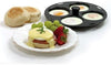 Cook perfect poached eggs at home! Great for making eggs benedict or an open-faced sandwich! Poach 1 to 4 eggs at a time, quickly and easily. For use in skillets or pans, 9-inches or larger. Nonstick coating for easy release and easy clean up. Stay cool knob in center protects your hands from heat and allows for easy removal. Handwashing recommended.