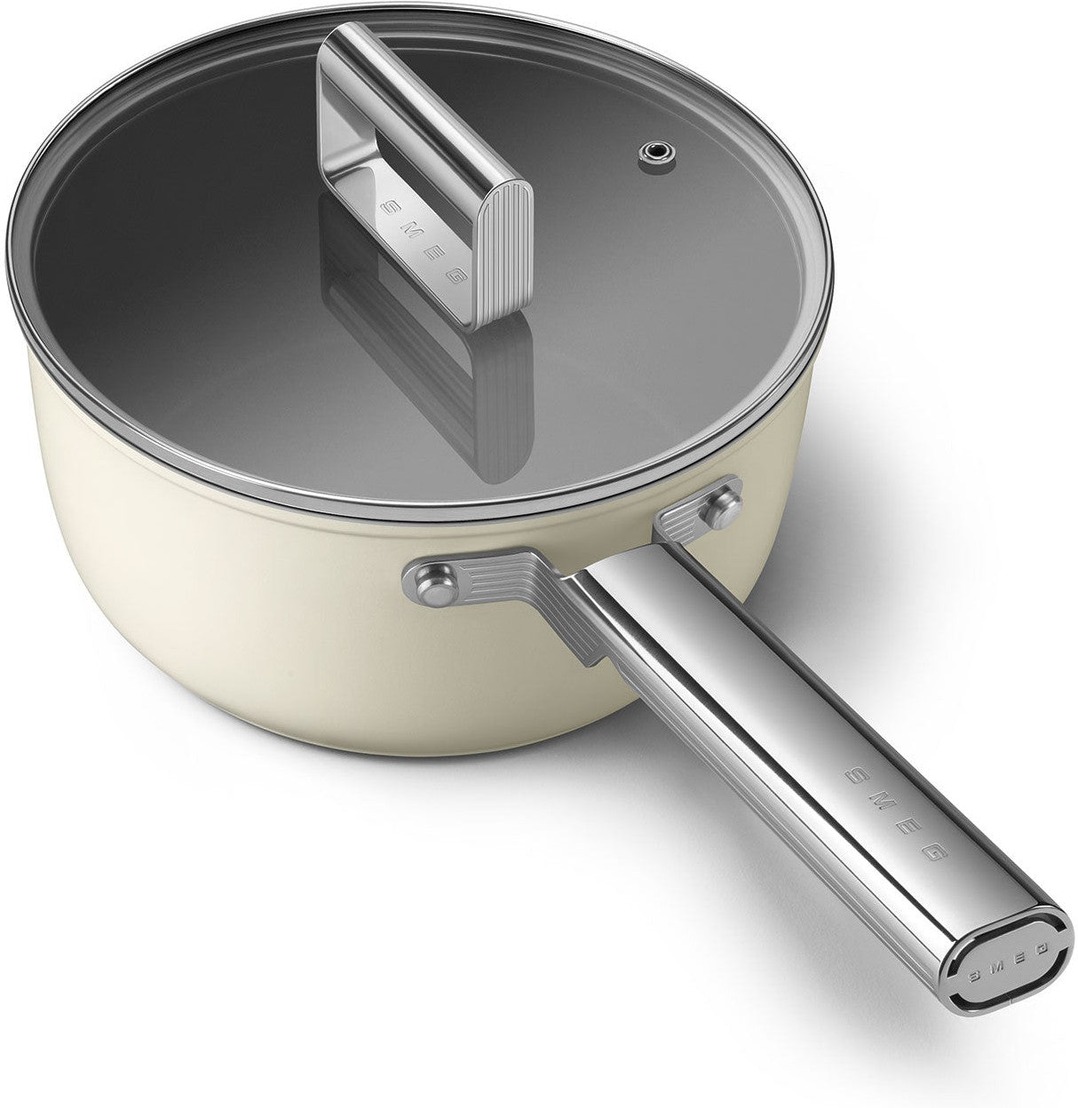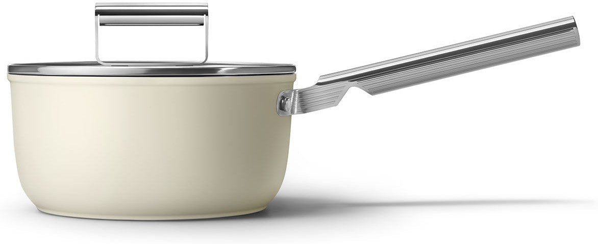 - Complete with a Fitting Lid: The Smeg 20" Cream Non-Stick Sauce Pan comes with a perfectly matched lid that seals in flavors and moisture, ensuring your dishes are irresistibly delicious. The ergonomically designed handle stays cool to the touch, ensuring a secure grip while cooking.