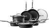 Set includes: 10" fry pan, 12" fry pan with lid, 1.5-qt sauce pan with lid, 2.5-qt sauce pan with lid, 3-qt sauté pan with lid, 8-qt stock pot with lid.
