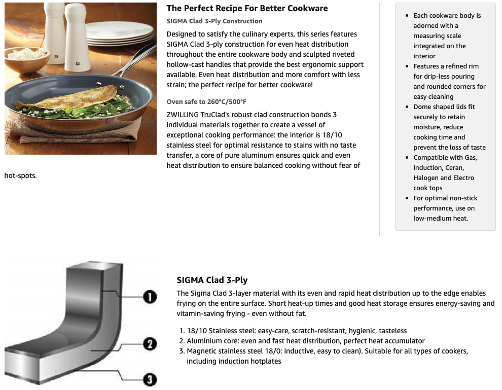 Designed to satisfy the culinary experts, this series features SIGMA Clad 3-ply construction for even heat distribution throughout the entire cookware body and sculpted hollow-cast handles that provide the best ergonomic support available. Enjoy consistent, professional quality results with the Zwilling Vistaclad 10"/26cm stainless steel non-stick frypan.