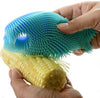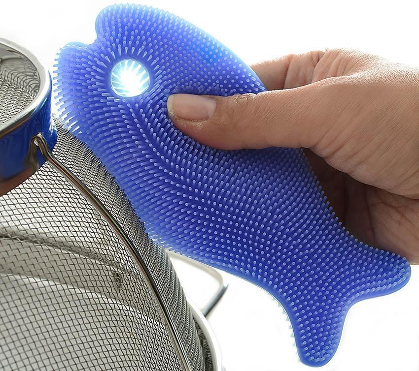 Say goodbye to smelly brushes! This cute double-sided silicone brush won't harbor bacteria and lasts longer than other brushes! This brush is reusable and flexible enough to reach into corners of pans, forms and curves of glasses and cups. Just drop in the dishwasher... no more residue! Includes a hook hole for hanging when done. Dishwasher safe.