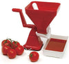 Press fresh tomatoes for the ultimate sauce, marinara, salsa, juice, puree, paste or soup. Ideal for applesauce. Attaches securely to counter or table with suction base. Stainless steel mesh strains and dispenses puree through chute into tray. Easy to clean. Tray, pestle, recipes and instructions included.