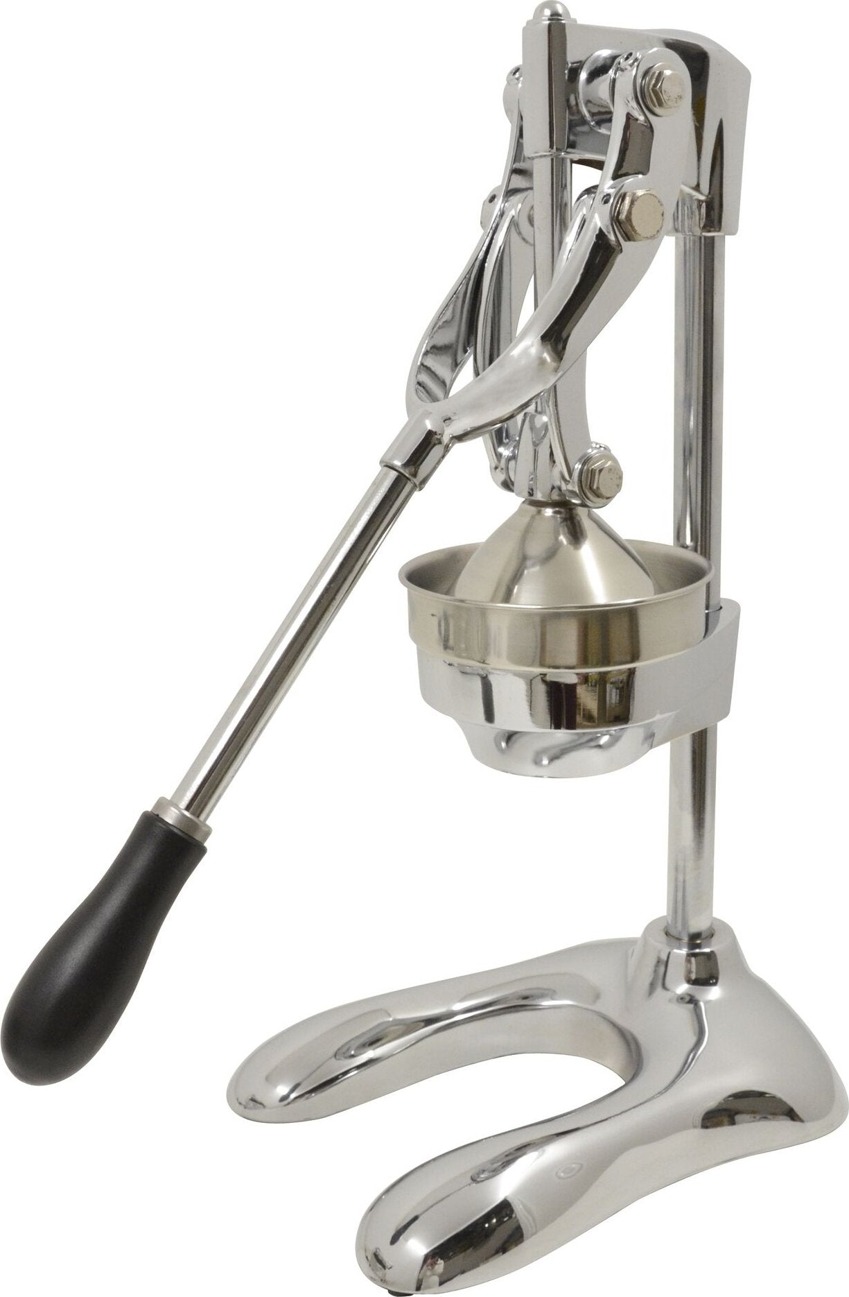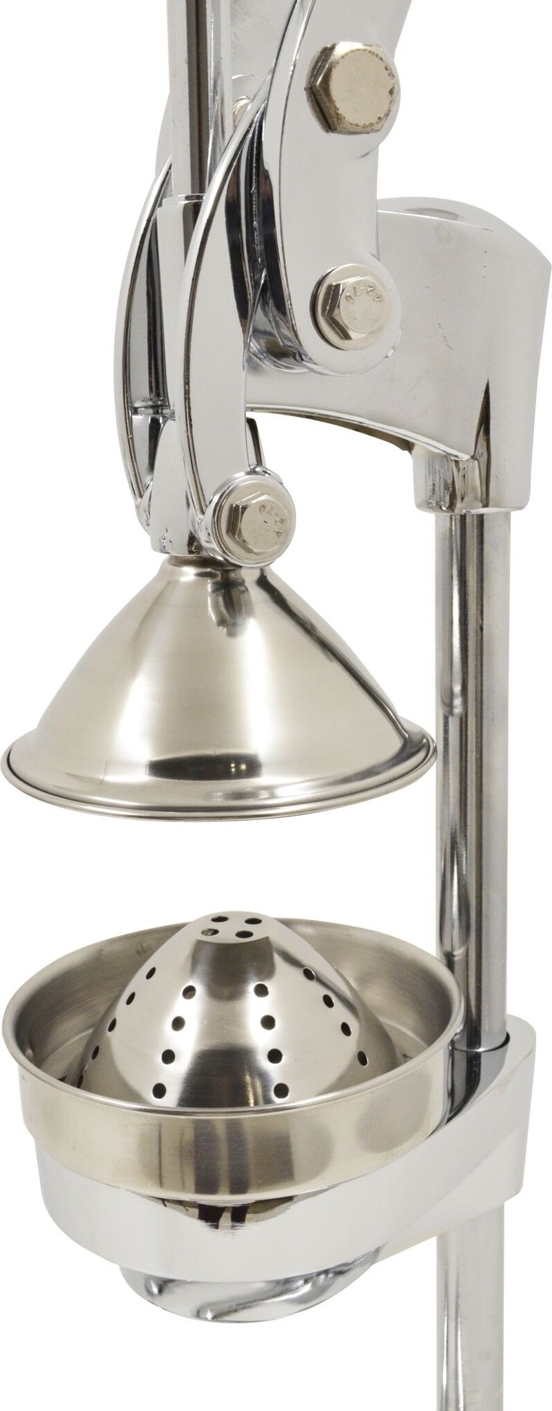 Ideal for extracting citrus juices, this manual juice extractor is made of attractive chromed metal and stainless steel. Ergonomically designed to make your juicing experience easy and efficient. Easy to use. This chrome manual juice extractor has a 4” diameter cutter plate. Perfect for bars, smoothie stands, and restaurants.