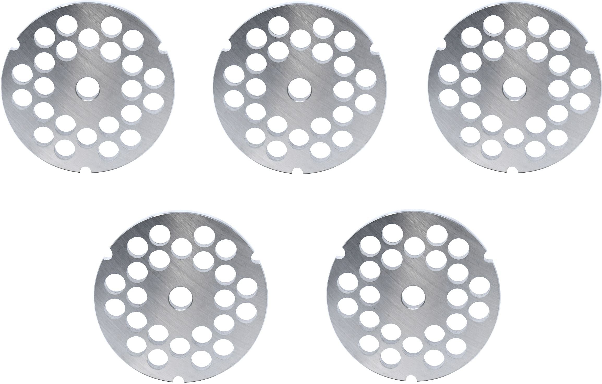 Omcan - #32 (12 mm) Carbon Steel Hubless 3-Notch Meat Grinder Plate, Pack of 5 - 11263