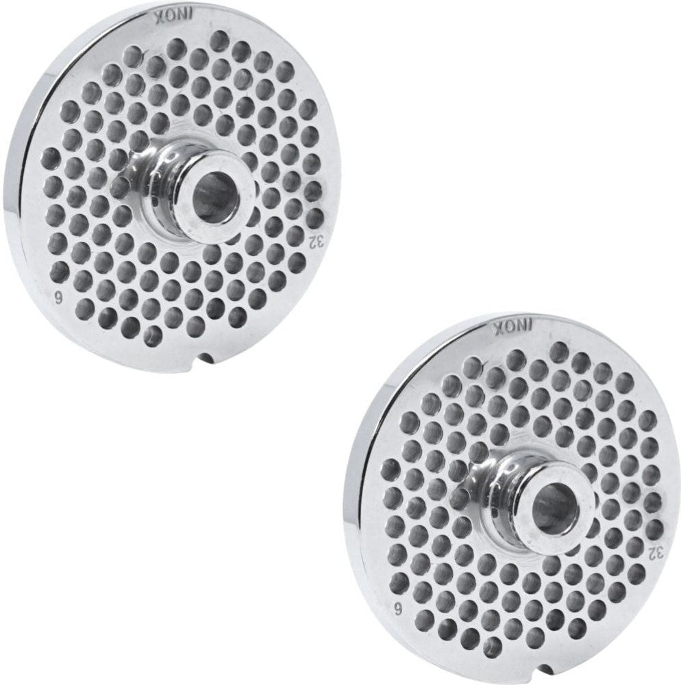 Omcan - #32 European-Style (6 mm) Stainless Steel Meat Grinder Plate with Hub, Pack of 2 - 11208