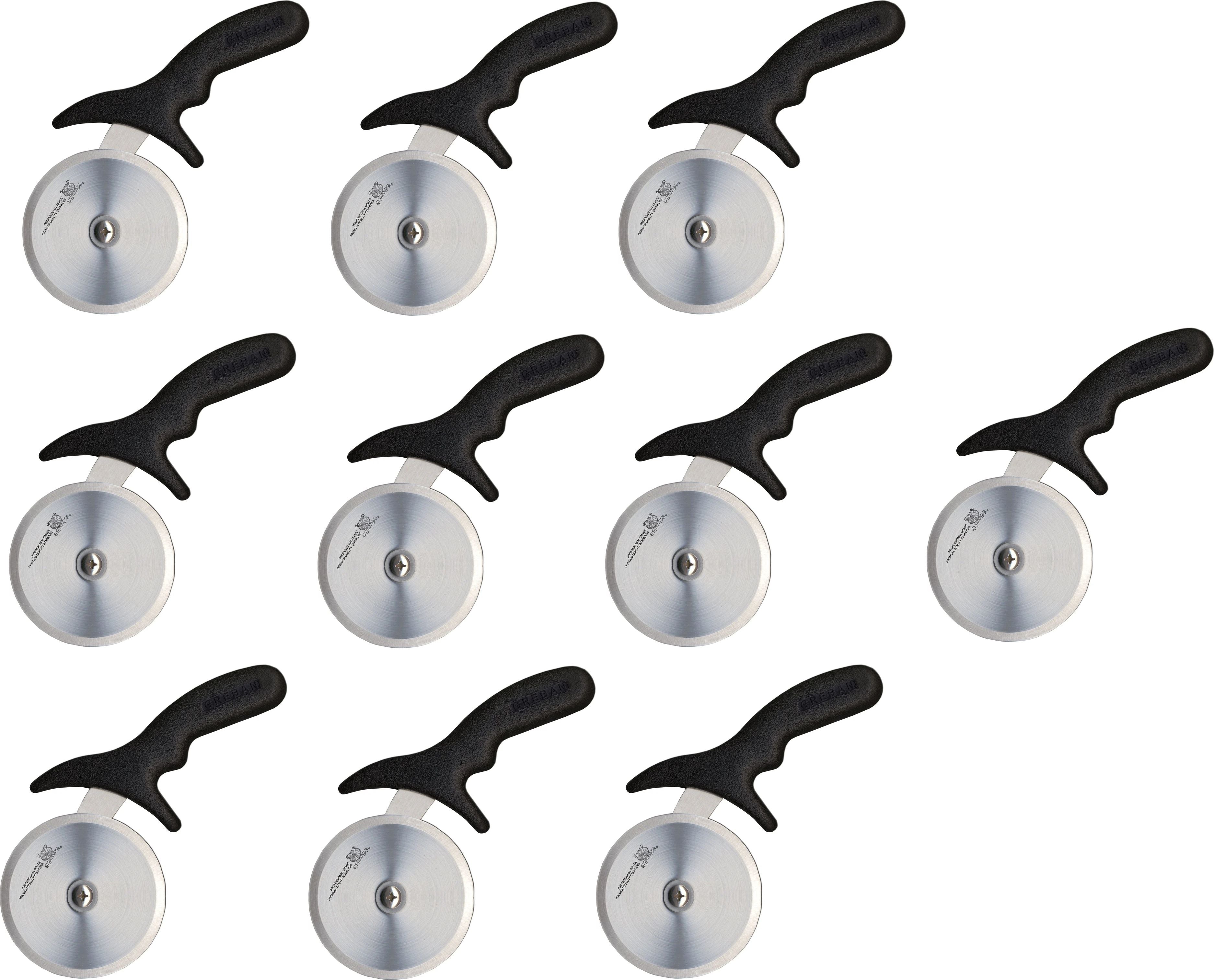 Keep up with all of your pizza orders with this pizza cutter! Or use it for baking to cut cookie or other dessert pizzas. With a 4" cutting wheel made of stainless steel which will cut through any crust, thick or thin, this product is durable and easy to clean. The one piece, molded handle offers a comfortable grip which makes the cutter easy to maneuver and control.