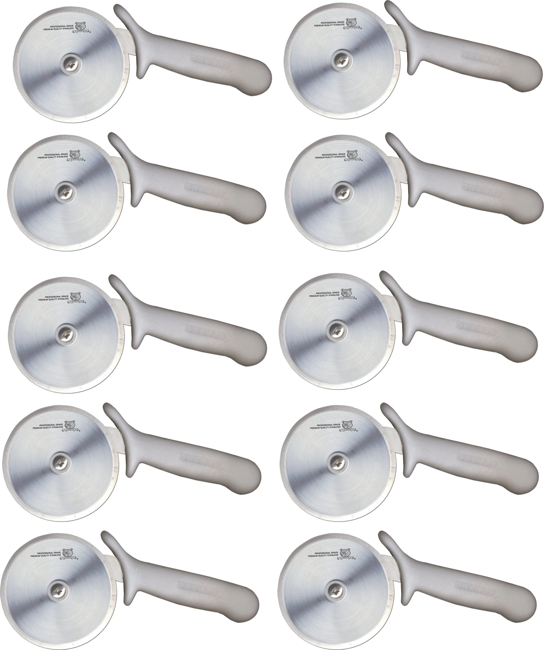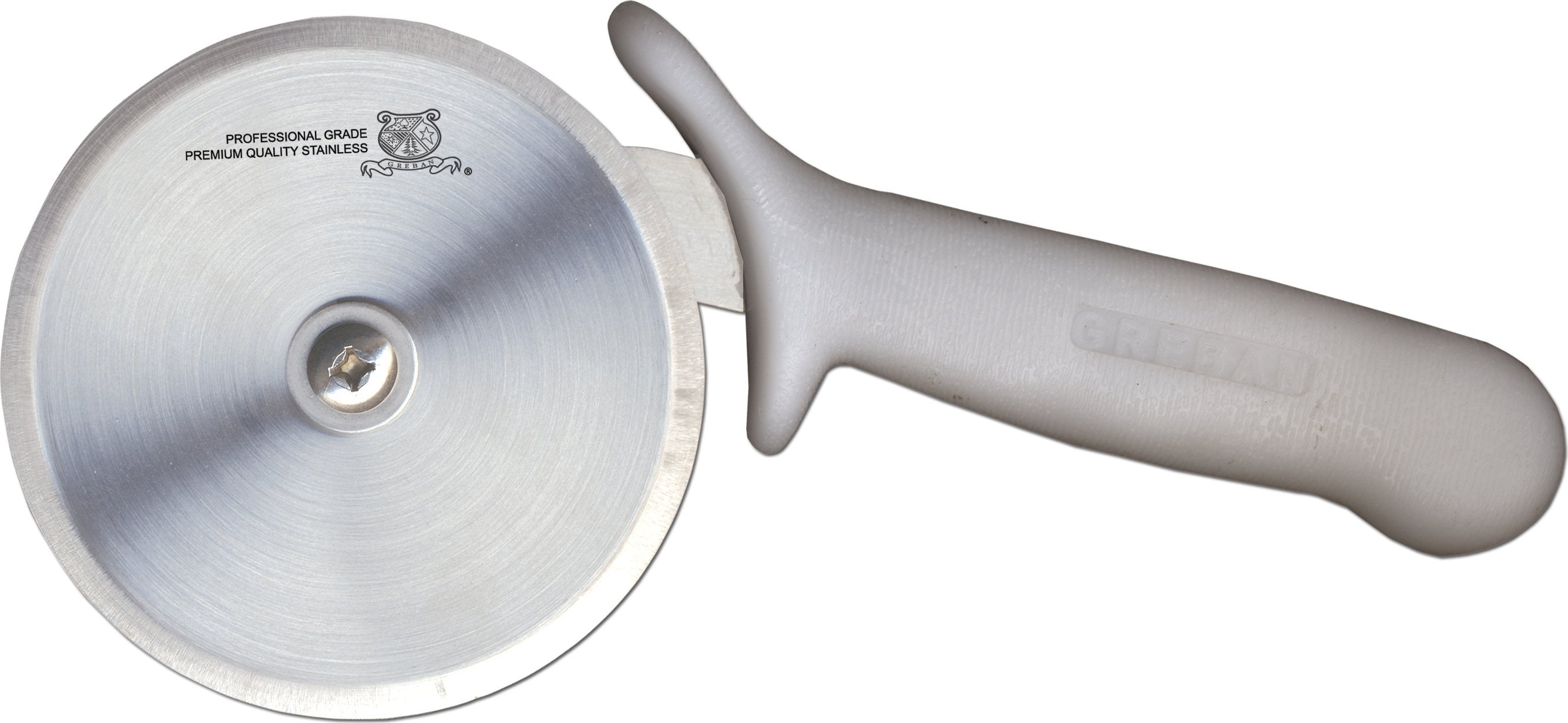 Keep up with all of your pizza orders with this pizza cutter! Or use it for baking to cut cookie or other dessert pizzas. With a 4" cutting wheel made of stainless steel which will cut through any crust, thick or thin, this product is durable and easy to clean. The one piece, molded handle offers a comfortable grip which makes the cutter easy to maneuver and control.