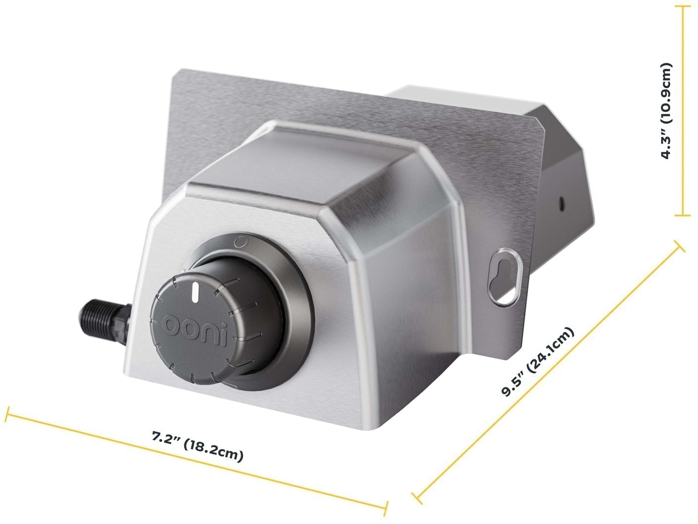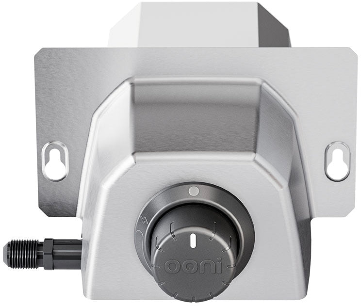 This improved burner has a low-power cooking function, a faster recharge time and a fully serviceable body. That means you’ll see better flame performance while cooking at any temperature, and you’ll also have more control over how you cook in your Karu 12. And if something goes wrong along the way, it’ll be easier than ever to go in and solve the problem. The Ooni Karu 12 Gas Burner comes with a 28 mbar regulator including a gas hose.