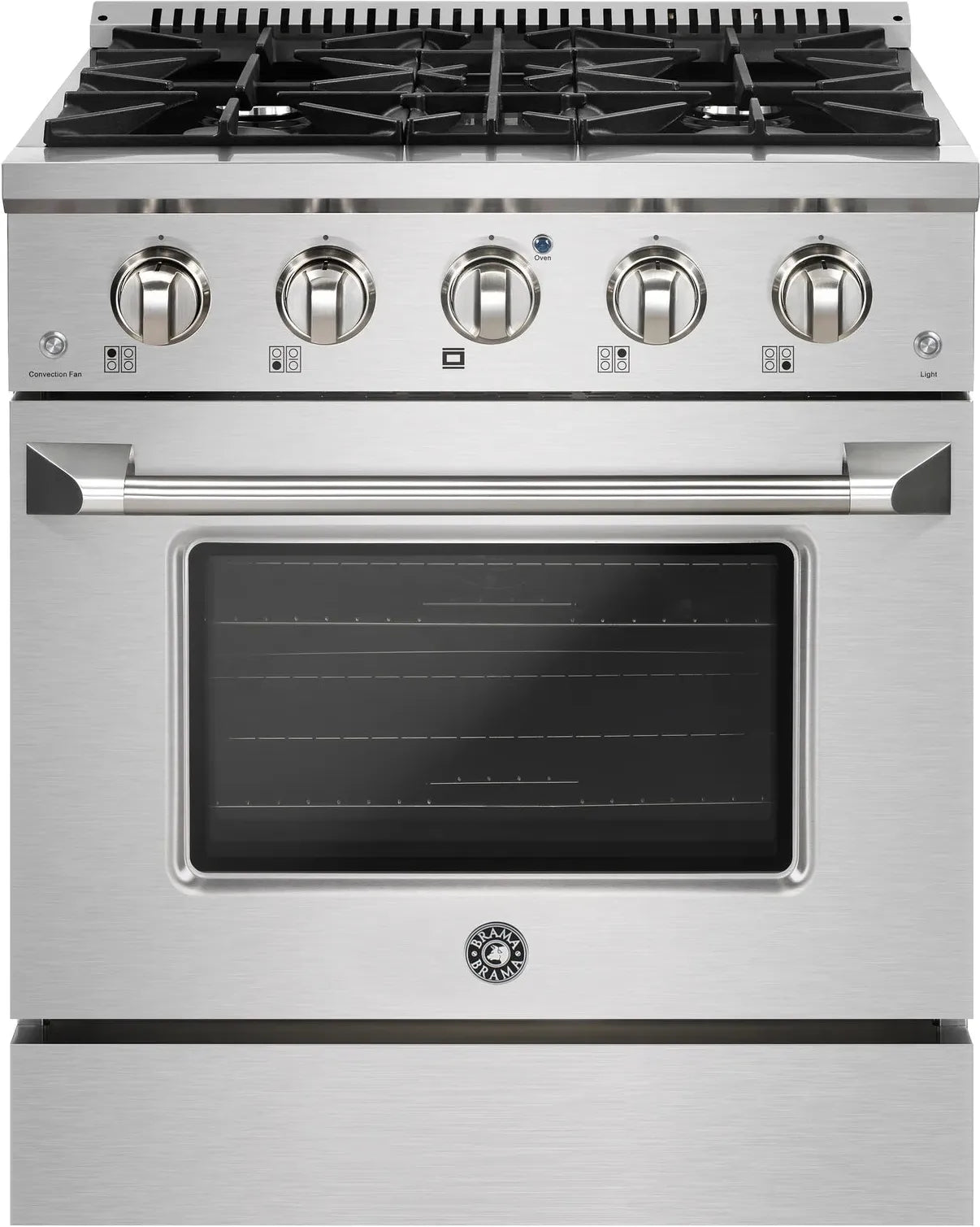 Elevate your kitchen with the Brama 30-Inch Stainless Steel Gas Range and Oven, a perfect blend of performance and modern design ideal for compact spaces. Built with premium stainless steel and professional-grade components, this gas range delivers both beauty and function for any home chef.
