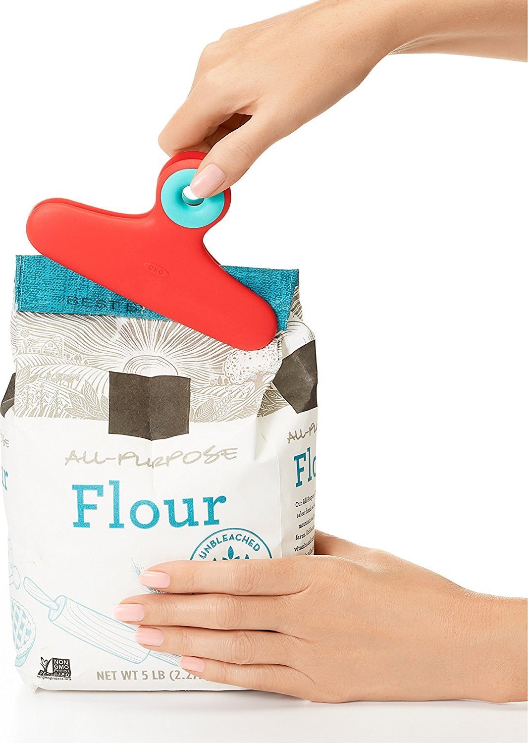 - Bag clip features wide mouth to securely close large bags and hold cookbooks open