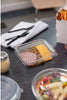 This container redefines food safety with its tamper-evident design, featuring an easy-to-snap-closed lid equipped with a perimeter seal. Ensuring an airtight closure, this feature guarantees the integrity of the container's contents, allowing for mess-free transport and ensuring peace of mind for both businesses and consumers. The clear design of the container serves multiple purposes, emphasizing the freshness of the food while showcasing its beauty. It offers a transparent view that accentuates the visual appeal of the stored items, making them more enticing to customers and enhancing the overall presentation.