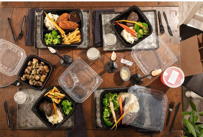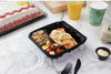 EarthChoice Dual-Color Polypropylene (PP) Hinged Lid Containers offer an upscale solution for hot, crispy, or cold foods. The black bases offer an elegant backdrop for your colorful menu items, while the clear lids provide easy order identification reducing mix-ups when packing to-go bags. These containers boast a leak-resistant full perimeter Zip Seal™ and incorporate our SmartVent™ system, which efficiently releases steam to maintain food freshness and crispiness. They are both microwave and top-rack dishwasher safe, providing convenience for consumers.