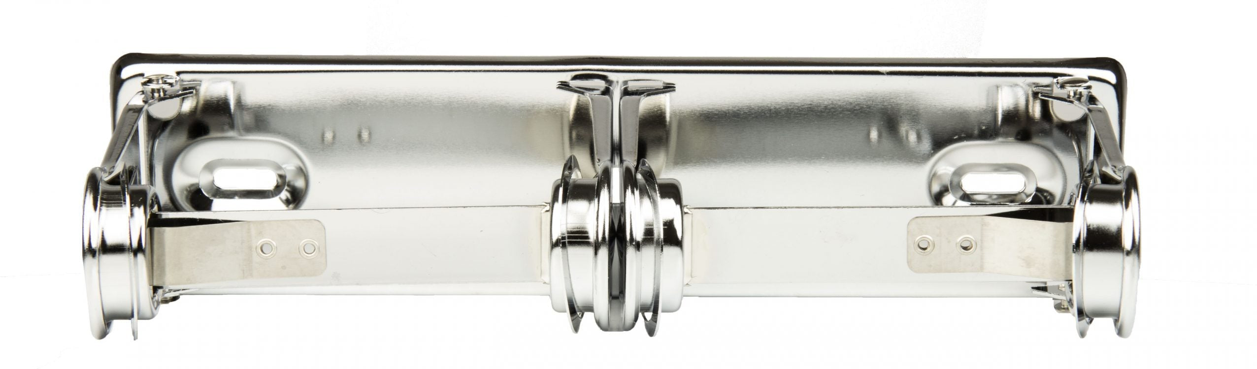 - Robust Construction and Finish: The entire unit is constructed with all-welded 18-gauge steel, providing durability and longevity. The arms are hinged on hardened steel rivets, and the dispenser is finished in polished chrome for a sleek appearance.