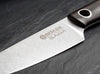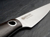 Our Boker Saga chef's knife series - handcrafted by our manufactory in Solingen - raises the bar and brings the topic of "cutting in the kitchen" to a new level. Our decades of experience in the outdoor knife world coupled with the ingenuity and creativity of Danish knifemaker Jesper Voxnaes were incorporated into the concept and design of Saga in an effort to achieve a new level of performance in terms of ergonomics and cutting technology. The carefully orchestrated transfer of this joint know-how into the culinary field is proof that working with Boker Saga will be an entirely unique experience. The softly swung grips are fabricated from exclusive certified imported grenadilla wood. With its high hardness and density, grenadilla wood is a fixture in the European wood instrument making field. The successful ergonomics already become apparent when the Boker Sage knife series is first handled: every curve, every bend in the line nestles itself into place on the hand, conveying absolute control and an exceptional cutting experience. The swallow-tail-shaped flare of the pommel on the larger models enhances grip security.