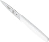 The Mercer - 3 Japanese Steel White Paring Knife, a culinary essential crafted for precision and durability. Forged from high-carbon Japanese steel, this knife boasts razor-sharp precision that effortlessly slices through fruits, vegetables, and more with ease. Its hollow ground blade not only ensures effortless cutting but also facilitates easy edge maintenance and rapid sharpening, keeping it in prime condition for your culinary endeavors. Designed with your comfort and safety in mind, the ergonomic polypropylene handle provides a secure grip, enhanced by textured finger points that prevent slipping, even in the midst of intricate tasks. For added peace of mind, a protective finger guard is integrated into the design, ensuring safety during use. Elevate your kitchen experience with the Mercer - 3 Japanese Steel White Paring Knife, where exceptional craftsmanship meets practicality for your culinary adventures.