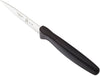 The Mercer Millennia® Japanese Steel Paring Display Refill Black Handle, a paring knife engineered for precision and durability. Crafted from a single piece of high-carbon Japanese steel, this knife ensures effortless edge maintenance and swift sharpening, delivering a consistently razor-sharp edge for all your culinary needs. Designed for superior grip and comfort, the handle features raised Santoprene® texturing, providing enhanced control and reducing hand fatigue during prolonged use. Textured finger points further enhance grip and safety, offering slip resistance for confident handling in any kitchen task. Safety is paramount with the inclusion of a protective finger guard, minimizing the risk of accidents during intricate cutting tasks. The ergonomic handle is a fusion of Santoprene® for cushioned comfort and polypropylene for lasting durability, ensuring both performance and longevity. Upgrade your kitchen arsenal with the Mercer Millennia® Japanese Steel Paring Display Refill Black Handle, a reliable companion for precision cutting tasks, whether in a professional kitchen or at home.