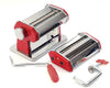 Now make your pasta at home! Made of chrome plated steel with nickel plated rollers. Makes pasta sheets up to 5.5” / 14cm wide. Cuts .06"/1.5mm pasta sheets, tagliolini or .25/6mm fettuccine. Clamp securely holds machine to table or counter top!