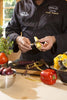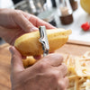These Rosle kitchen utensils with round handles are filled with epoxy cement which seals the tool so water and germs cannot penetrate. The convenient hanging loop is great for storage. The swivel blade is ideal for peeling vegetables and fruit with skins of medium thickness. The tip of the tool sharpened on both sides is useful for quickly removing potato eyes or other blemishes. Intended for right-hand use and peeling movement towards the user. Blade is exchangeable.