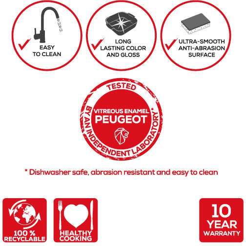 One of the standout features of Peugeot's ceramic oven dish is its ability to keep your meals hot for up to 30 minutes after they are taken out of the oven. This feature allows you to serve piping hot dishes to your table without rushing. The wide striated handles make it safe and easy to carry, and the dish is dishwasher-safe, ensuring hassle-free cleaning.