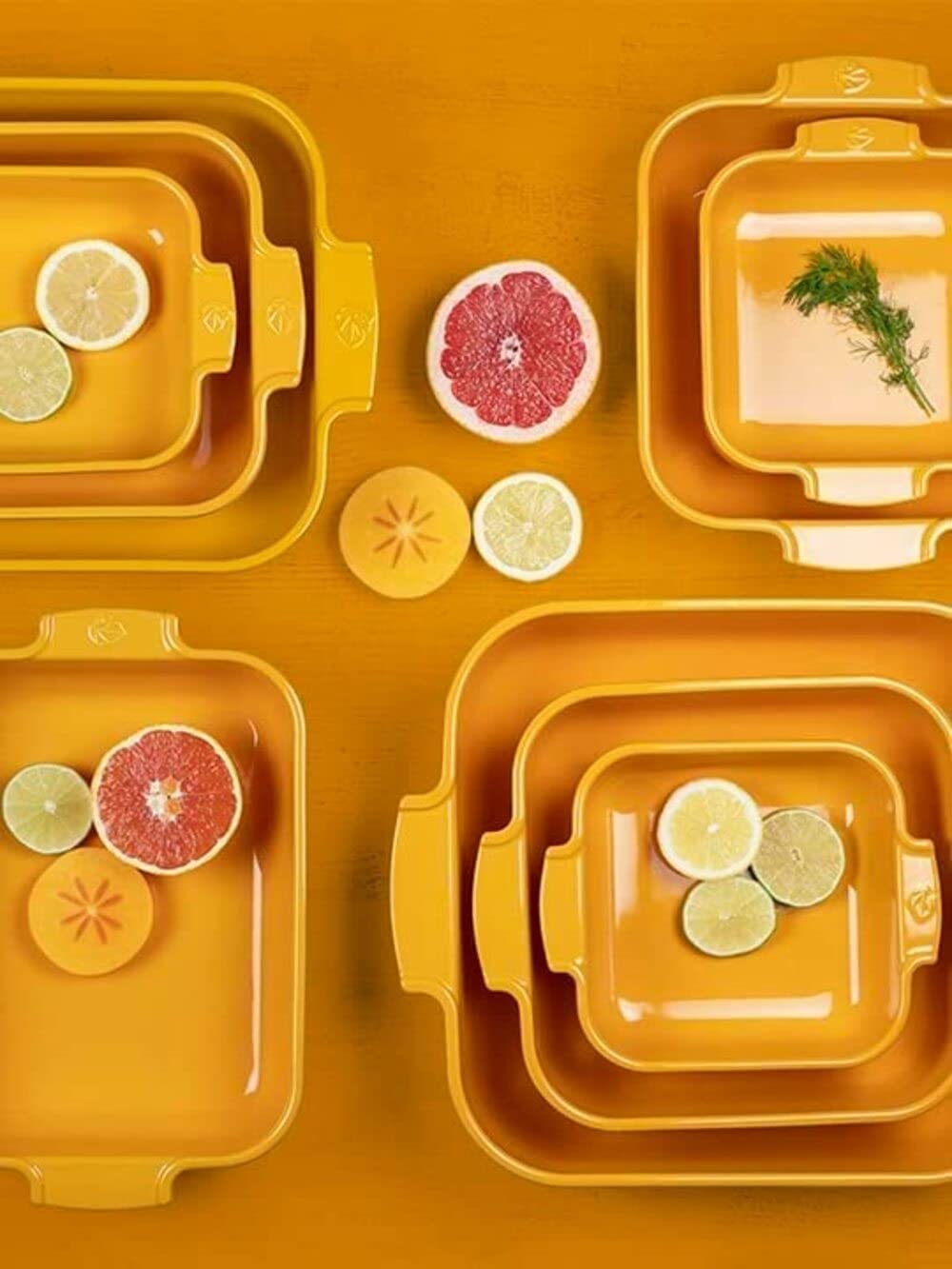 The Peugeot Appolia 7.08" Square Saffron Yellow Baking Dish is a vibrant and practical addition to your kitchen essentials. Crafted in France from 100% natural ceramic, this petite baking dish offers exceptional performance with gentle, even heat distribution for healthy, delicious meals. Its eye-catching saffron yellow finish adds a cheerful touch to your table while delivering professional-grade results.