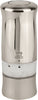 Electric mill in ABS with a brushed chrome finish and a contemporary ergonomic shape; 6 AAA batteries provided; 1 light bulb is mounted in the mill, a spare is provided; pepper grind is adjusted via a thumbwheel under the mill, salt mill is fixed at a medium grind.