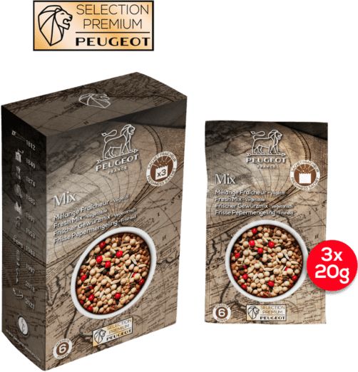 Peugeot presents its Fresh Pepper Blend for Fish in convenient sachets, offering a delightful combination of white pepper, fennel, and coriander. This aromatic blend is carefully curated to deliver a burst of fresh flavor with a harmonious balance of intensity and finesse, making it the perfect complement to fish and seafood dishes. Additionally, its versatile nature makes it suitable for enhancing the flavors of light salads and vegetable dishes.