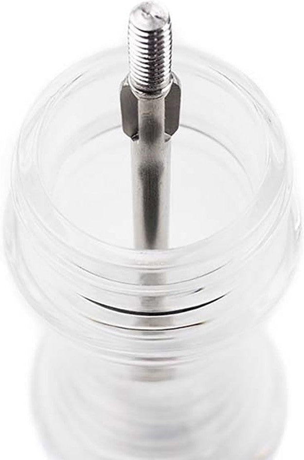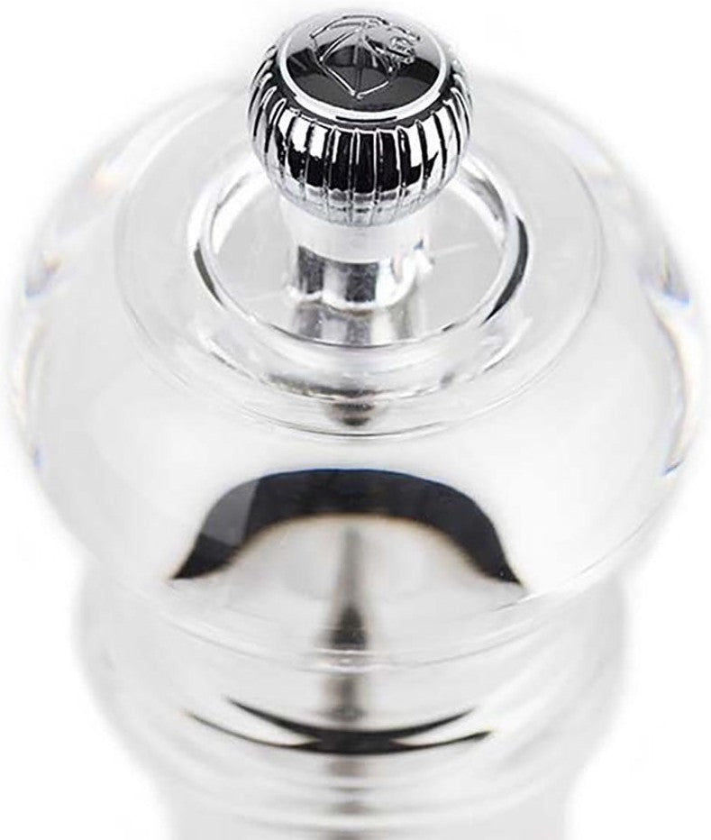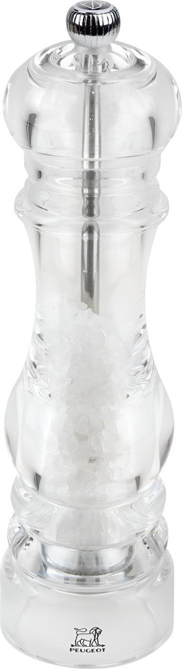 The familiar lines and total transparency make this Peugeot Nancy 12 cm salt mill an essential for the table and the kitchen. Produced entirely in acrylic it highlights its contents,the shining white salt & pepper.