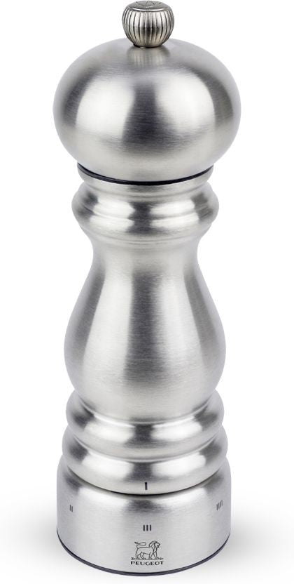 • Made in France. Brushed stainless steel finish. Peugeot Mills are partially filled with pepper at the factory in France as part of final assembly and testing