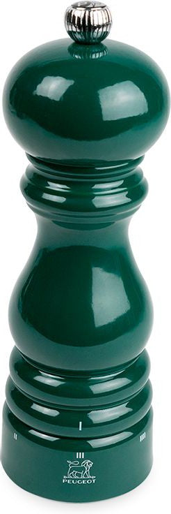 Featuring Peugeot's renowned u'Select grind adjustment system, this pepper mill allows for precise customization of pepper coarseness to suit individual preferences and culinary needs. Whether grinding black, white, green, or pink peppercorns, the Paris mill ensures consistent results and optimal flavor extraction with every use. The mechanism is backed by a lifetime guarantee, ensuring long-lasting performance and reliability. Additionally, the forest green pepper mill is designed to deliver both visual appeal and practicality, enhancing the dining experience while serving as a striking decorative accent.