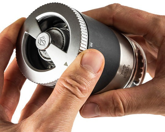The Maestro pepper mill, equipped with Peugeot's renowned u'Select grind adjustment system, empowers users to tailor their grinding experience with six predefined settings. From delicate and fine to robust and coarse, the grind intensity can be easily adjusted to suit individual preferences, allowing for a truly personalized culinary experience. This innovative feature ensures that each pepper's unique aroma, potency, and heat are fully unleashed with every twist of the mill.