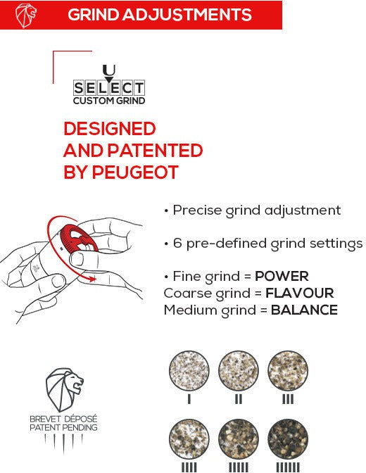 Peugeot is shipped free across Canada on orders over $149. Since 1840 in the heart of Doubs in France, Peugeot has been manufacturing world renowned salt and pepper mills, and their patented u'Select grind adjustment system is unlike any other on the market. Find the right model for you with other 180 to choose from!