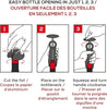 Place the bottle opener on the neck of the bottle. Turn the handle clockwise to force the spinner into the cork. To extract the cap, turn counterclockwise. To retrieve the cap, simply push down.