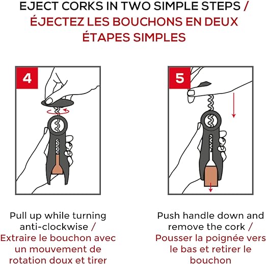 - EASE & EFFICIENCY — This manual corkscrew is simple to use and has an elegant appearance. It is equipped with a continuous screw system that is designed to minimize resistance and works with any type of bottle or cork with a single movement