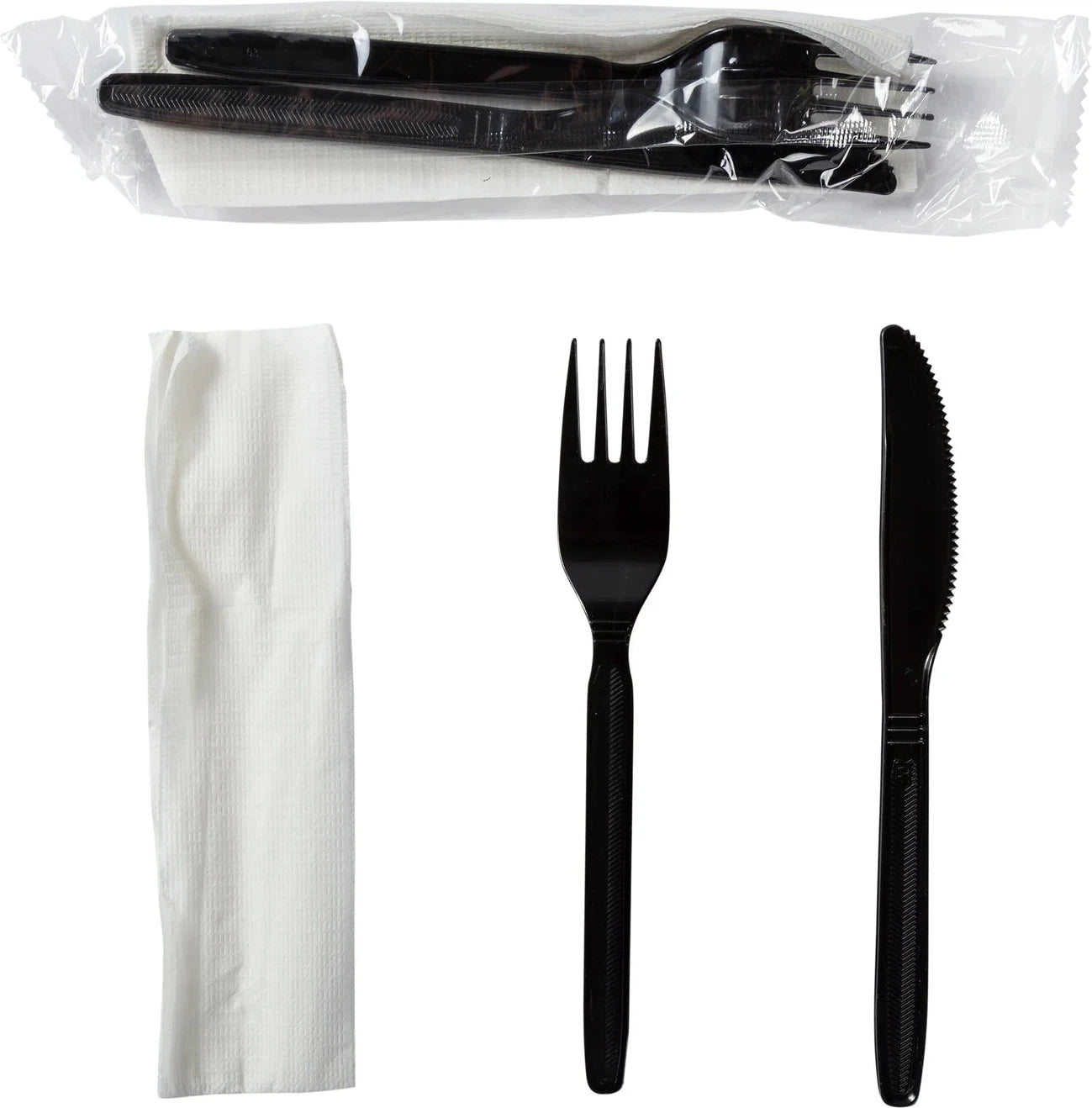 Complete Dining Solution: The Hy-Stix Black Cutlery Kit offers a comprehensive dining experience with a heavy-weight fork, knife, and napkin neatly packaged together. Streamline your dining setup with this all-in-one solution.