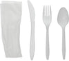 Pactiv Evergreen - Fieldware Medium Weight Wrapped White Plastic Cutlery Set (Fork, Spoon, Knife, Napkin), 250 Count - FKFSKWNCH