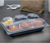 Dart - 11.5" x 8" MPS Plastic Black/Clear Hinged Lid 4-Compartment Dinner Box, 100/Cs - 919020-PM94