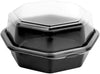 Designed for both upscale and casual dining on the go, the Creative Carry outs Octa-View containers from Solo are perfect for a variety of food items. The hinged feature adds convenience for customers, making it easy to access their meals while maintaining the freshness of the contents. In terms of material, the container is made from PET, a durable and reliable plastic that ensures the integrity of the packaging. It is suitable for cold items and is freezable, allowing for the storage of chilled or frozen foods. The container can withstand a minimum temperature of -22 °F and a maximum temperature of 151 °F, ensuring versatility in storing various food types. With 200 containers per case, the Dart Container - 6" Creative Carry outs Octa-View 14 Oz Plastic Hinged Container is a practical and visually appealing choice for businesses aiming to enhance their presentation, drive sales, and provide customers with a premium on-the-go dining experience. To-go packages that do the selling for you.Consumers taste with their eyes before buying. This unique octagon design turns visual attraction into customer satisfaction. It boosts portion perception and drives impulse sales. Attractive black base and clear lid allow premium pricing with unmatched sales appeal. Octa-View is the container of choice for upscale and casual dining on the go. Perfect choice for baked goods, sandwiches, salads, and other cold food applications.