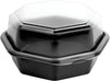 Designed for both upscale and casual dining on the go, the Creative Carry outs Octa-View containers from Solo are perfect for a variety of food items. The hinged feature adds convenience for customers, making it easy to access their meals while maintaining the freshness of the contents. In terms of material, the container is made from PET, a durable and reliable plastic that ensures the integrity of the packaging. It is suitable for cold items and is freezable, allowing for the storage of chilled or frozen foods. The container can withstand a minimum temperature of -22 °F and a maximum temperature of 151 °F, ensuring versatility in storing various food types. With 200 containers per case, the Dart Container - 9" Creative Carry outs Octa-View 42 Oz Plastic Hinged Container is a practical and visually appealing choice for businesses aiming to enhance their presentation, drive sales, and provide customers with a premium on-the-go dining experience. To-go packages that do the selling for you.Consumers taste with their eyes before buying. This unique octagon design turns visual attraction into customer satisfaction. It boosts portion perception and drives impulse sales. Attractive black base and clear lid allow premium pricing with unmatched sales appeal. Octa-View is the container of choice for upscale and casual dining on the go. Perfect choice for baked goods, sandwiches, salads, and other cold food applications.